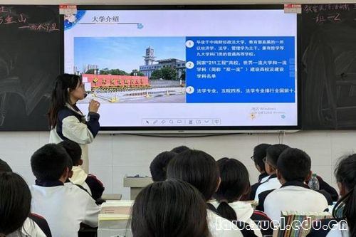 (研支团志愿者王小怡在筑梦讲堂上为同学们讲述大学梦)
