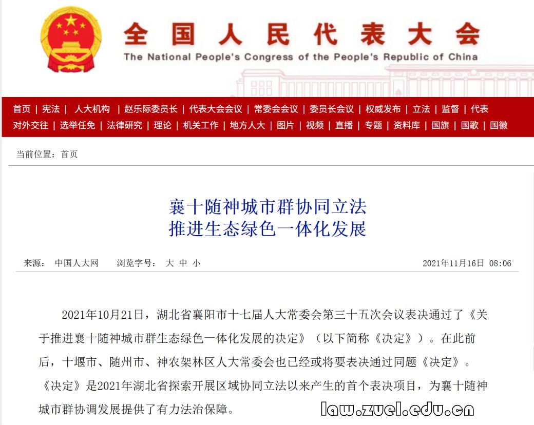 (图为中国人大网对“襄十随神”区域生态绿色发展协同立法的宣传)