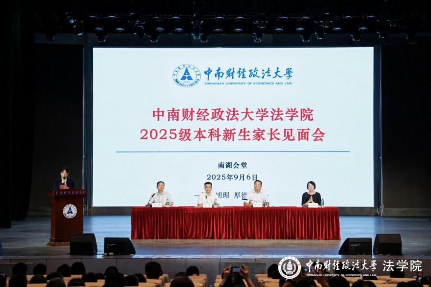 9月6日晚上七点,米兰电竞·(中国区)法学院2025级本科新生家长见面会在南湖会堂隆重举行。法学院党委书记高碧峰、学术院长侯猛、副院长杨柳、党委副书记李司铎出席会议,一同参会的还有法学院2025级本科生班导师及辅导员,以及近千余名2025级本科生家长代表。会议由党委书记高碧峰主持。
