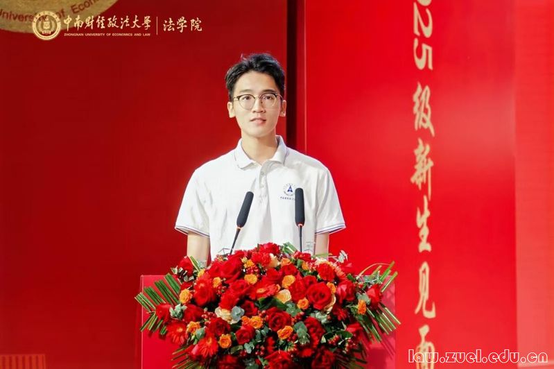 司法2301班本科生李弘韬作为在校生代表发言,他结合自身两年的学习、工作、成长,从以理想为灯塔、在实践中成长和以奋斗为底色三个方面分享在学生工作、模拟法庭等平台中的成长感悟,呼吁师弟师妹们“在图书馆深耕、在辩论中思辨、在实践中成长”。