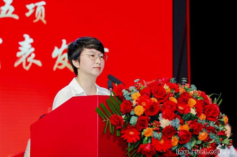 2001级法律系刘亮作为校友代表发言。刘亮校友是党的二十大代表、现任黄石市人民检察院党组成员、副检察长。从检18年,先后荣获全国先进工作者、全国模范检察官、全国优秀公诉人等多项荣誉,被授予个人一等功。9月3日,作为全国检察官战线优秀代表,受邀参加在北京举行的纪念抗战胜利80周年大会。她以“叩窄门、走远路、见微光”三个关键词,结合案例分享了对法律人生的体悟。她阐释,“叩开门”是领悟“良善的心是最好的法律”;“走远路”需秉承“厚德济世”的校训,坚守为民初心;“见微光”则是在具体案件中感受法律的力度与温度,让专业赋予人们生活的底气与尊严。