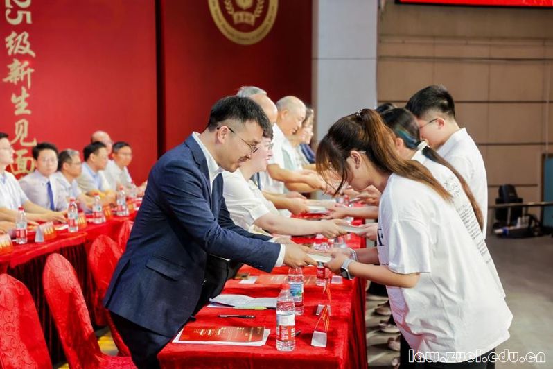 墨卷传薪,书香育人。今年,学院延续“以书为媒,传习法治精神”的传统,为每一位本科新生赠送《法学的11种可能》,激励新生开阔视野,在书籍中探寻法学之精妙与趣味,坚定未来前进方向。见面会上,领导老师向新生代表赠书。