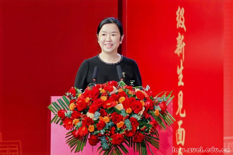 财税法领域知名学者、博士生导师、经济法学系黎江虹教授作为教师代表发言。她以“泡泡玛特”成功案例为引,强调情绪管理的重要性,并向新生提出五点建议:建立正确自我认知,珍视独一无二的自己;秉承长期主义,相信“慢就是快,笨就是聪明”;定期进行数字排毒,摆脱信息过载与成瘾;寻找一项热爱的运动,通过多巴胺获得富足心态;学会掌控情绪,实现自我救赎。