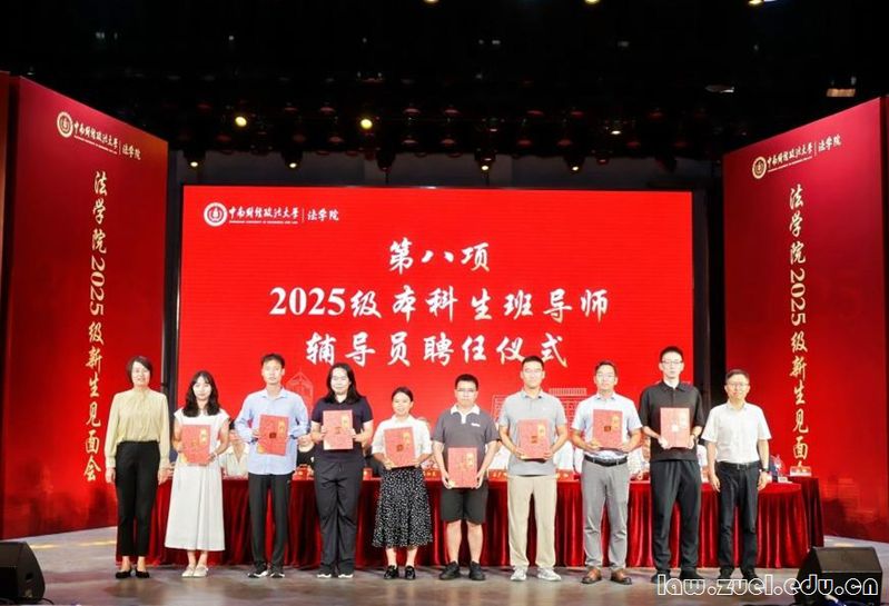 法学院始终高度重视本科生班导师和辅导员队伍建设。见面会上,法学院副院长杨柳、党委副书记李司铎为2025级本科生18位班导师、3位辅导员老师颁发聘书。