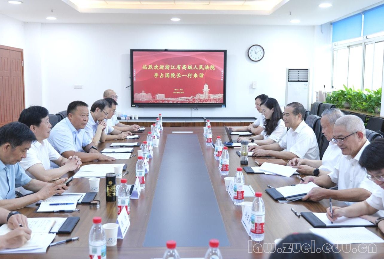 (通讯员 张申鹏 王临登)2025年9月10日上午,浙江省高级人民法院党组书记、院长李占国率队到我校调研。浙江省高级人民法院审判委员会原专职委员、一级高级法官周根才,办公室主任冯亚景、副主任倪佳丽、干部王文韬参加调研。湖北省高级人民法院党组成员、副院长王秋隆,办公室四级调研员谭兴陪同调研。校党委副书记、纪委书记申祖武,党办、校办副主任陈佳,纪检监察学院教授徐汉明,刑事司法学院教授杨宗辉,法学院党委书记高碧峰,法学院副院长张宝、侯卓,法学院党委副书记陈金川,教师代表吴京辉、疏义红、旷涵潇等参加调研座谈。会议由高碧峰主持。