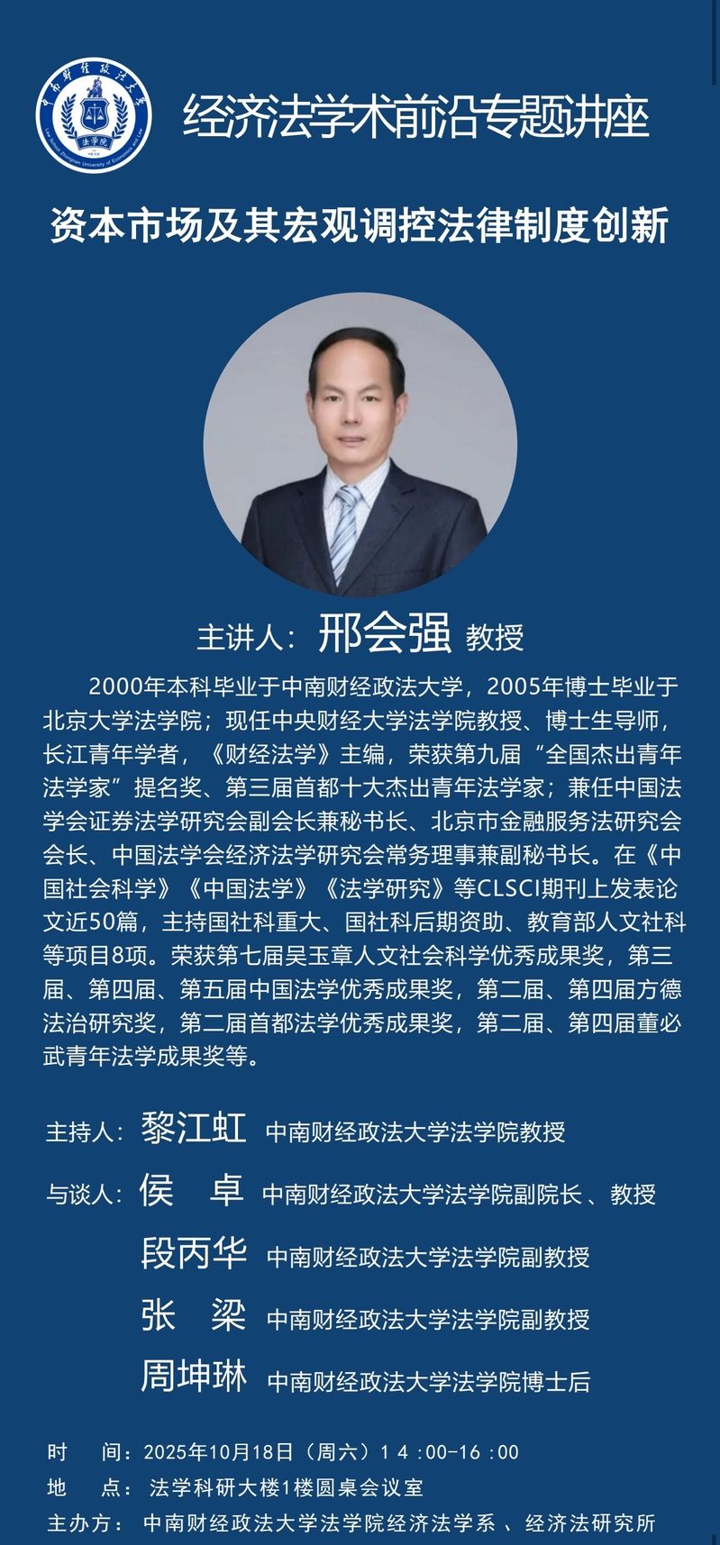 【讲座预告】经济法学术前沿:邢会强教授专题讲座