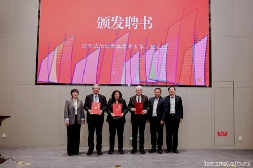 仪式现场还举行了授旗与聘书颁发环节。校党委常委、副校长陈柏峰为第二期“涉外法治创新班”授旗。法学院党委书记高碧峰、刑事司法学院院长董邦俊、纪检监察学院(国家治理学院)党委书记袁桂君为创新班指导专家颁发聘书。知识产权学院院长黄玉烨、国际法学院院长徐伟功、法与经济学院党委书记周俊杰为创新班班主任颁发聘书。