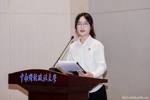 创新班学员代表魏粲然感谢学校为基地创新班学员提供了一个视野开阔,走向国际的良好学习机会,并分享了自身成长历程,表示将以创新班为起点,深耕涉外法治领域,努力成为通晓国际规则的新时代法律人。