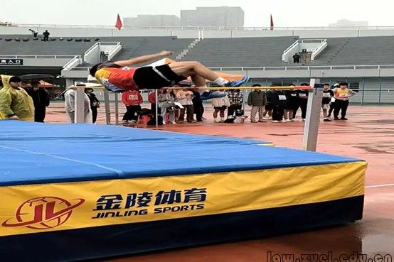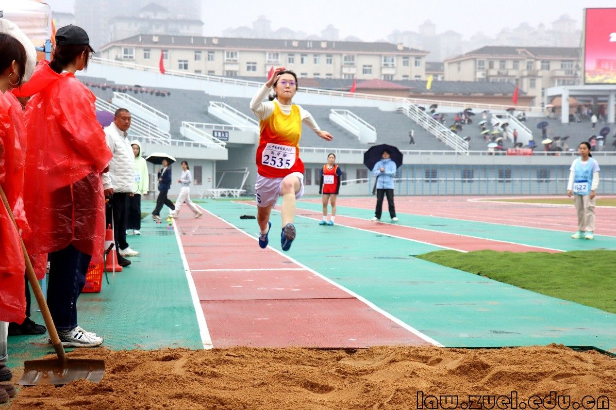 如海燕般轻盈,似猎豹般矫健。起步,冲刺,跳跃。她们的身躯冲破雨幕,每一个动作都流露出与天公角力的豪迈。一跃,二跃,三跃。泥水与汗水交织,她们用如火的热情,在赛场上留下了浓墨重彩的一笔。最终,我院余金雨、陈彤彤在女子学生三级跳决赛中分别斩获第一名、第三名的佳绩!