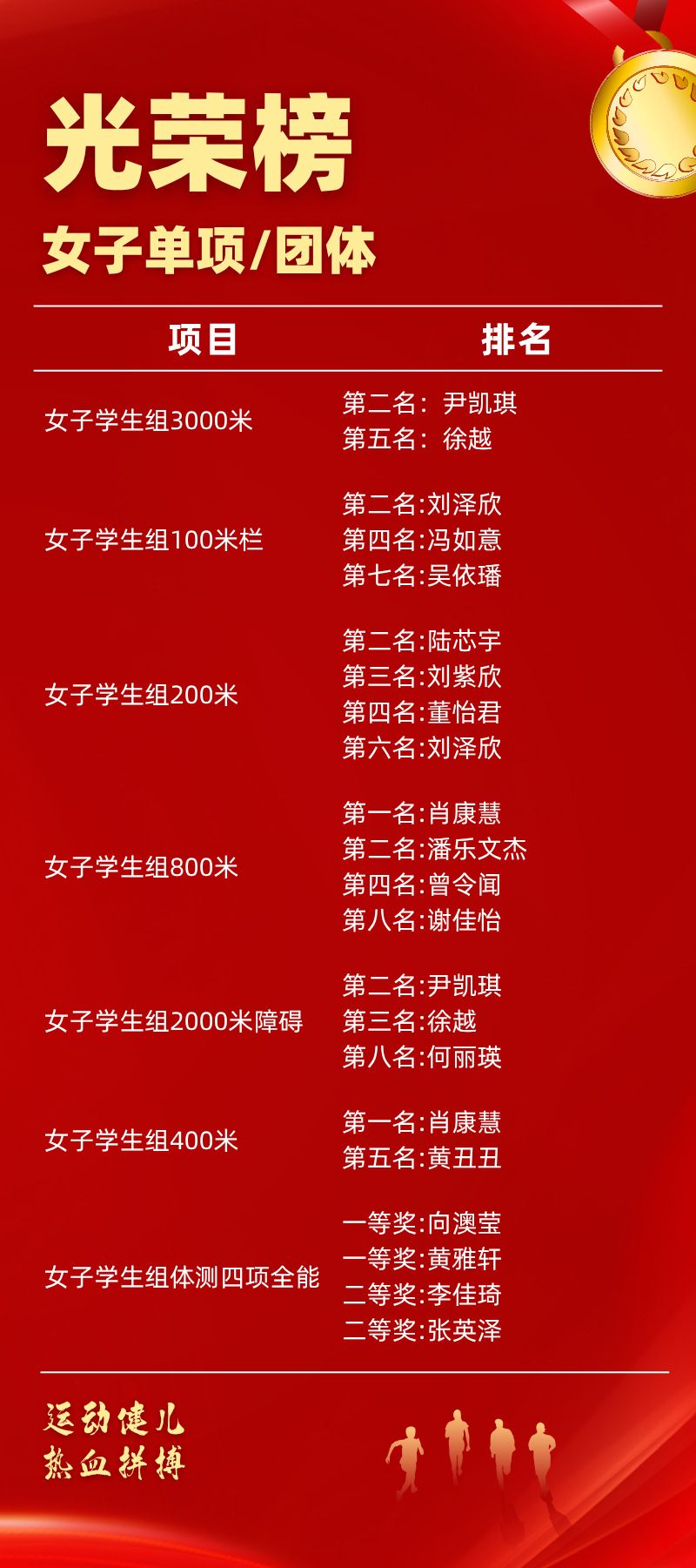 终点是唯一的信仰,脚步是永恒的答案。在这场速度与耐力的双重考验中,我院参赛选手,以坚韧为甲,以意志为刃,破风而行。她们奋力冲刺,最终,我院肖康慧、潘乐文杰、曾令闻、谢佳怡同学分别取得第一名、第二名、第四名、第八名的好成绩。