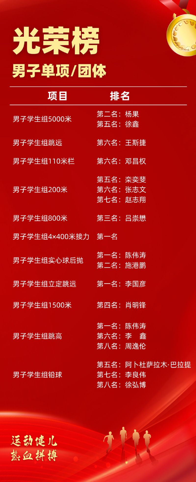 沉身,蓄力,凝神。沉腰转身,将全部信念灌注于掌心之上的铅球。一次完美的发力,金属球体在空中划过完美的弧线,仿佛承载着不屈的意志,主动奔向它的落点,为这场力量的角逐写下无可争议的注脚。最终,我院的阿卜杜萨拉木·巴拉提、李良伟和徐弘博分别获得第五名、第七名和第八名的好成绩。