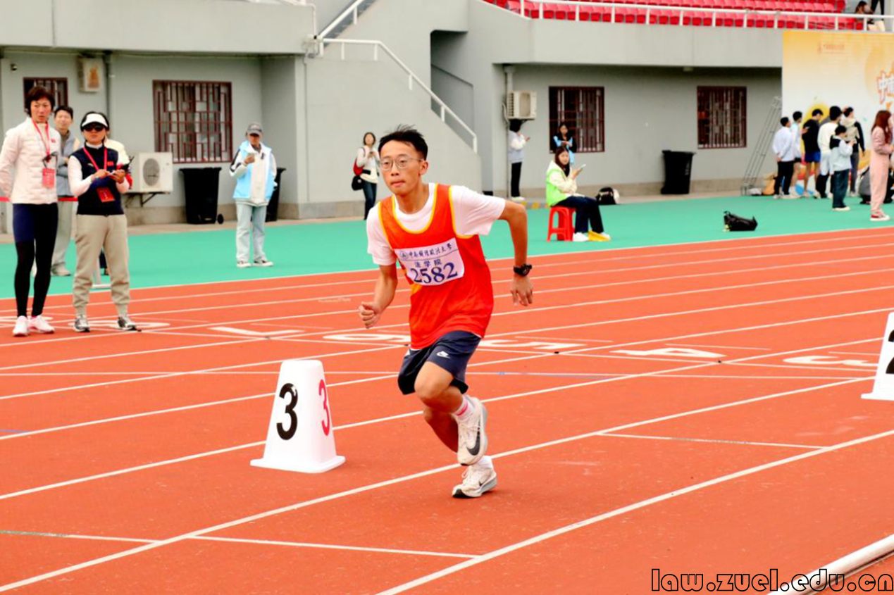 跑道蜿蜒,青春激昂,耐力与速度共舞,坚持同拼搏齐飞。意志如利刃,步伐若惊雷。1500米赛道,是对坚持的试炼,更是对活力风采的展演。看,每一步都踏响坚持的鼓点;听,每一次呼吸都呐喊着无畏;感,每一寸肌肉都迸发着力量。法学院肖明锋同学,如振翅的鲲鹏,在红色跑道上开启征程。最终以第四名的成绩,为法学院争光,为青春添彩。