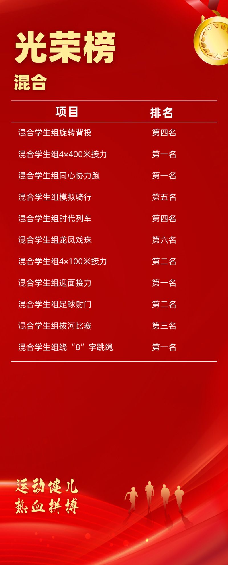 迎金秋之灿灿,聚集体之团魂。一条赛道,是四个人的拼搏,一棒一棒,连起并肩的征程,每一次交接,都是信任的传递;每一次跨步,都是期望的翻涌。最终,我院荣获混合学生组4×100米混合接力决赛第二名的佳绩。