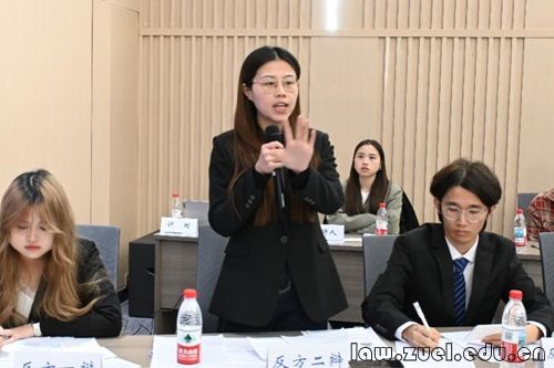 紧接着,决赛正式拉开帷幕。正方法律(非法学)2403班立足于“广度教育”,强调在复杂社会背景下法律人应具备跨学科知识整合能力;反方法律(法学)2502班1队则坚持“深度优先”,主张在专业分工细化的时代,唯有深耕特定领域才能形成不可替代的专家价值。双方在立论、质询、对辩、盘问、自由辩论等环节中你来我往,既勇于正面回应对方质疑,也展现出倾听与尊重,整场辩论在对话中层层推进,引导观众深入思考法学教育的未来路径。