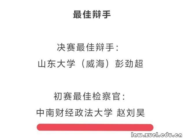 (图二 我校代表队赵刘昊同学荣获最佳检察官)