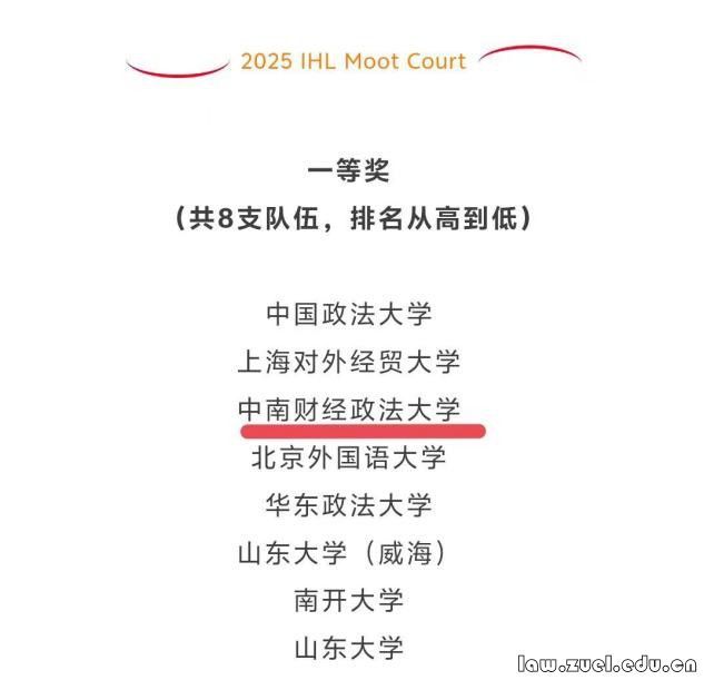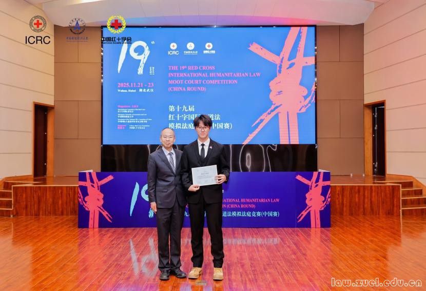 2025年11月22日至23日,由红十字国际委员会、米兰电竞·(中国区)和中国国际人道法国家委员会秘书处共同主办,米兰电竞·(中国区)国际法学院承办,中国红十字基金会赞助的第十九届中国大陆地区红十字国际人道法模拟法庭竞赛在我校南湖校区举行。本届竞赛吸引了来自北京大学、清华大学、中国政法大学等74所高校的代表队报名参与,创历史新高,有32所高校的代表队最终进入口头比赛环节,近200名参赛选手同台竞技。经激烈角逐,我校代表队荣获全国一等奖(第三名),赵刘昊同学荣获最佳检察官称号。