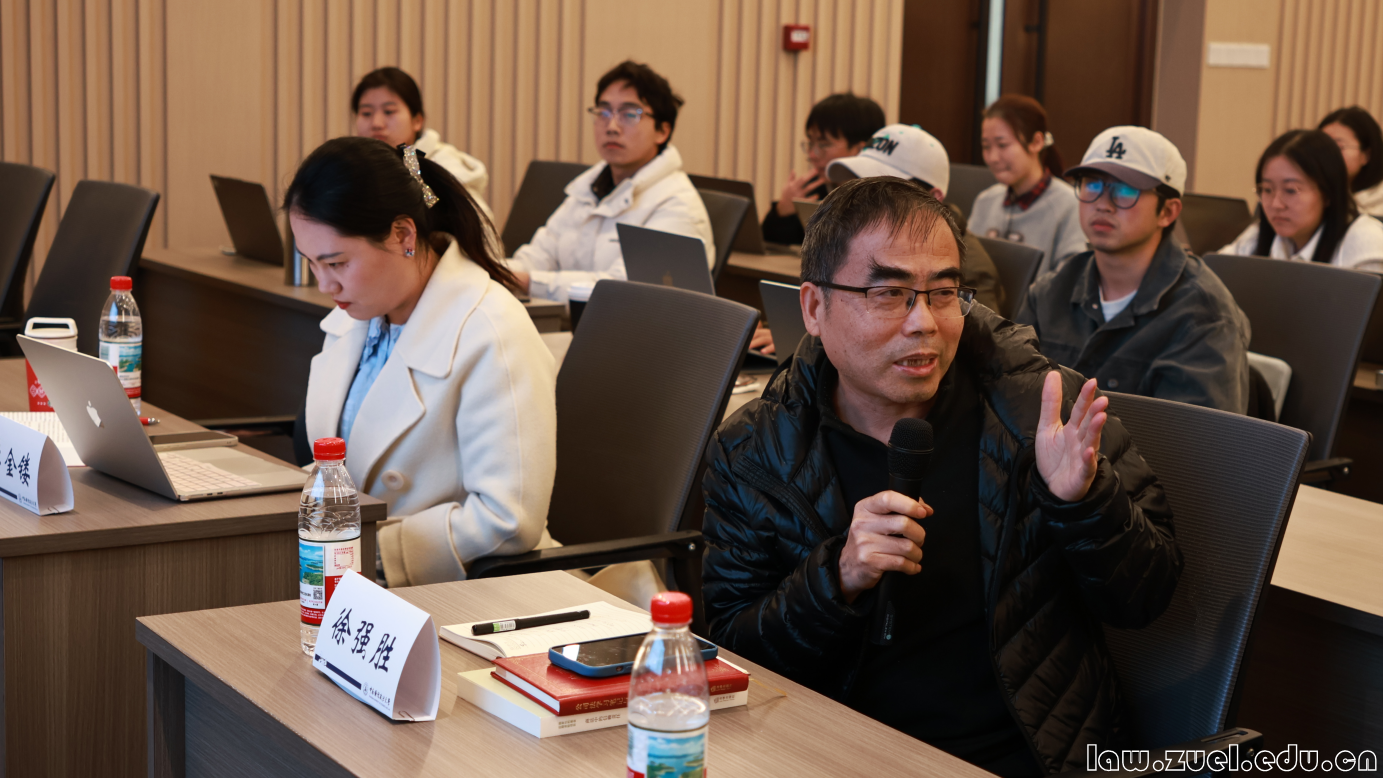 南京大学法学院教授、博士生导师,《法律和社会科学》资深编委缪因知教授应我院邀请,于2025年11月27日14:30-17:00,在南湖校区文湛楼107报告厅开展“商法学术前沿专题讲座”,主题为“新《公司法》下的董事二元义务厘清与责任限制”。本场讲座由法学院副院长侯卓教授主持,徐强胜教授、段丙华副教授、李金镂老师、旷涵潇老师出席活动并参与讨论。本场讲座吸引了近百名学生到场学习。