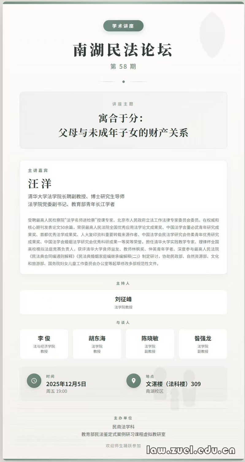 南湖民法论坛第58期:寓合于分:父母与未成年子女的财产关系