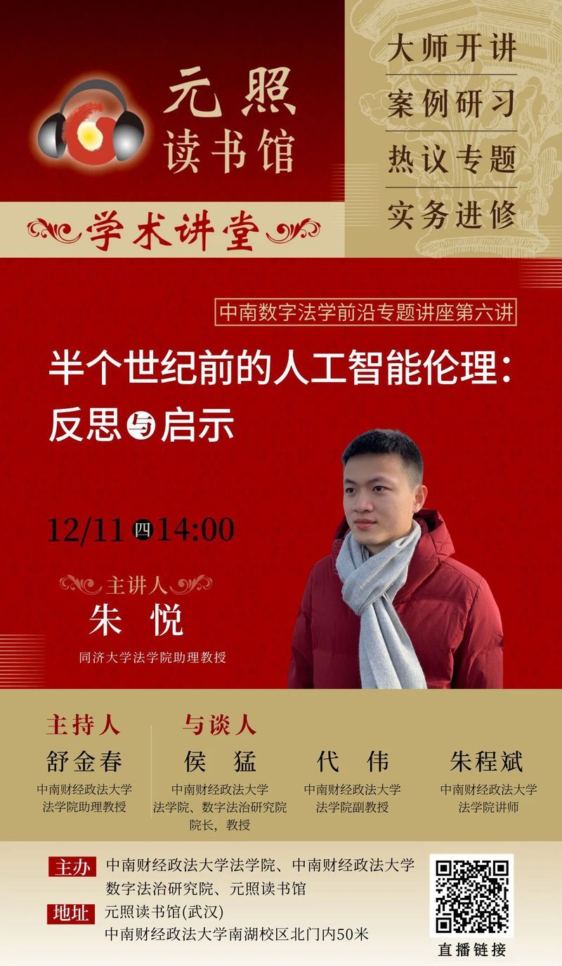 数字法学前沿专题讲座第六讲|朱悦:半个世纪前的人工智能伦理:反思与启示