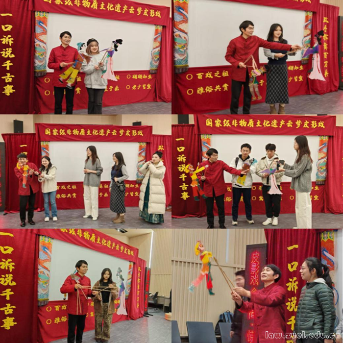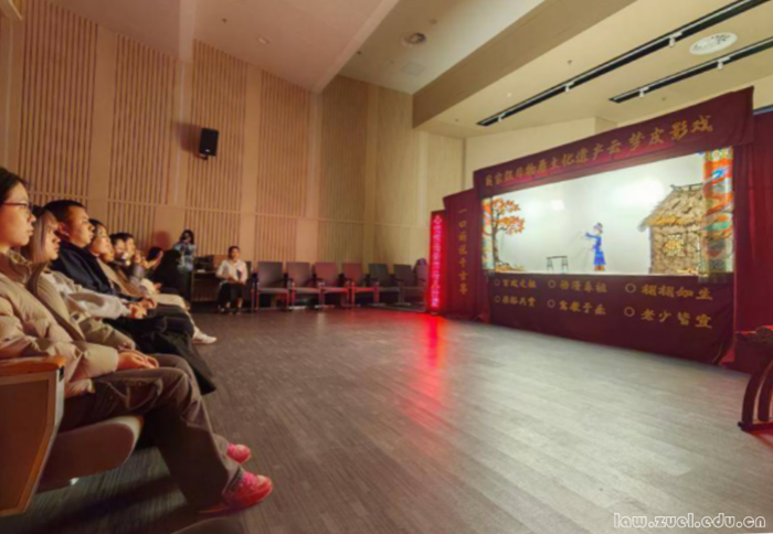 12月18日下午,文湛楼小报告厅内光影摇曳,掌声如潮,一场别开生面的文化盛宴在冬日暖阳中悄然绽放,法学院党委副书记李司铎、法学院辅导员代表、圆梦晓南生涯发展工作室成员出席,近百余名学生现场参与此次活动。当古老皮影艺术邂逅澳门回归26周年纪念日,光与影的曼妙交织,娓娓诉说着“根脉相连、文化同源”的温暖主题。