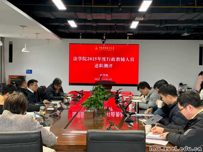为深入贯彻学校人事改革部署及相关文件精神,落实“锚定主业、德才兼备、注重实绩、分类评价、公开公正”的考核导向,强化行政教辅队伍建设,提升管理服务质效,12月23日下午,法学院在文湛楼309会议室举行2025年度行政教辅人员述职测评会。学院领导班子成员、专任教师代表组成评审组,全体行政教辅人员参与述职。