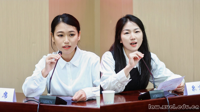 获奖学生代表张孜妍、翁林雪依次发言。2024级法律硕士张孜妍表示,法律专业学位教育中心回归法学院运行后,通过案例分析大赛、辩论赛、模拟法庭等实践教学环节,实现了理论与实践的有机融合。作为2025级新生的翁林雪则对比了本科阶段的理论学习,发现学院以实践为导向的培养模式,通过真实案例研讨和职业化点评,帮助新生完成从知识积累到实务应用的思维转型。