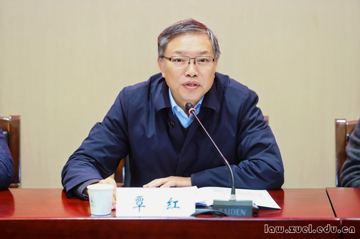 覃红教授为颁奖典礼致辞。他指出,法学院法律专业学位教育中心举办的模拟法庭竞赛、研究生班级辩论赛及案例分析大赛是深化实践教学改革的关键举措,有效实现了“以赛促学、以赛促练”,助力学生完成从知识学习到实务应用的跨越。