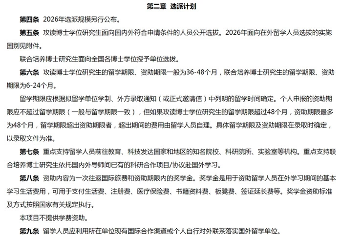 原文来源:国家留学网-2026年国家建设高水平大学公派研究生项目专栏(https://www.csc.edu.cn/chuguo/s/4032)