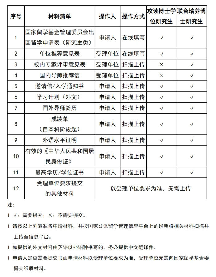 (1)申请人应提交外方院校(单位)出具的正式入学通知扫描件或国外导师出具的正式邀请信扫描件。正式入学通知或正式邀请信应使用拟留学院校(单位)专用信纸(文头纸),入学通知由外方院校(单位)主管部门负责人、邀请信由国外导师签字。