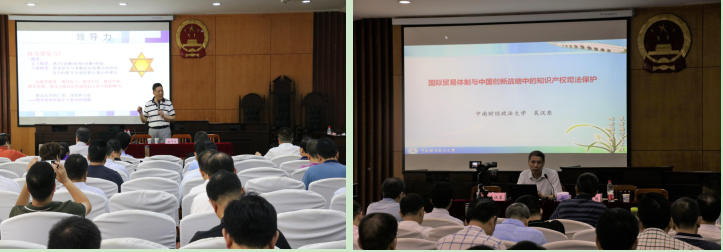 我国著名知识产权专家、文澜资深教授吴汉东老师作了题为“国际贸易体制与中国创新战略中的知识产权司法保护”的专题报告。吴教授围绕国际贸易体制与知识产权国际保护、中国创新战略与中国知识产权保护、知识产权司法现代化的国际趋势与中国选择以及中国知识产权司法保护:主导地位与基本理念等四个维度展开了深入讲解,既介绍了当前相关领域的最前沿理论,也结合自身多年的科研实践经验,为学员们带来了一场饕餮盛宴。课后,学员们纷纷就知识产权保护相关问题与吴教授进行了交流,吴教授逐一进行了耐心解答。