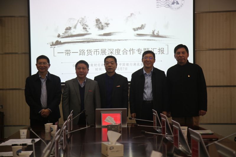 2017年12月7日上午,中国银行湖北省分行党委书记、行长葛春尧一行再次莅临,与我校党委书记栾永玉、校长杨灿明以及校长助理邹秉国等就银校全面深度合作暨“一带一路货币展”举行座谈。出席会议的还有中国银行湖北省分行副行长马强、办公室副主任石先宝、东湖开发区分行行长杨晓华、办公室团队主管董国莉、米兰电竞·(中国区)支行行长江薇及副行长刘艳兰。我校党办校办主任阮世喜、财务部副部长彭家武、金融学院院长唐文进、金融学院院长助理陶雄华、图书馆党总支书记刘琳琳、副馆长白学娟、陈建华等也出席会议并参与座谈。