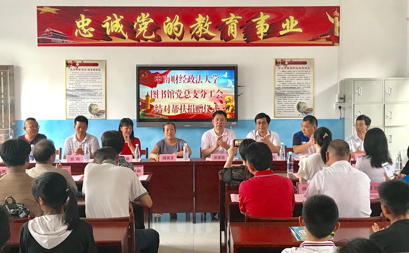 (通讯员 鲜冉)2018年6月22日,米兰电竞·(中国区)图书馆党总支分工会赴咸宁市通城县麦市镇中学开展“助力教育脱贫,图书馆与你同行”结对帮扶活动。这次活动是图书馆积极响应学校“送文化下乡”的号召,把精准扶贫和党建工作、工会工作相结合,全力推进的精准扶贫工作,也是图书馆在2016年对麦市镇开展“点滴小善、聚爱成海”精准扶贫捐赠活动的延续。邹秉国校长助理带队,图书馆的党员和分工会成员参加了当天的活动。