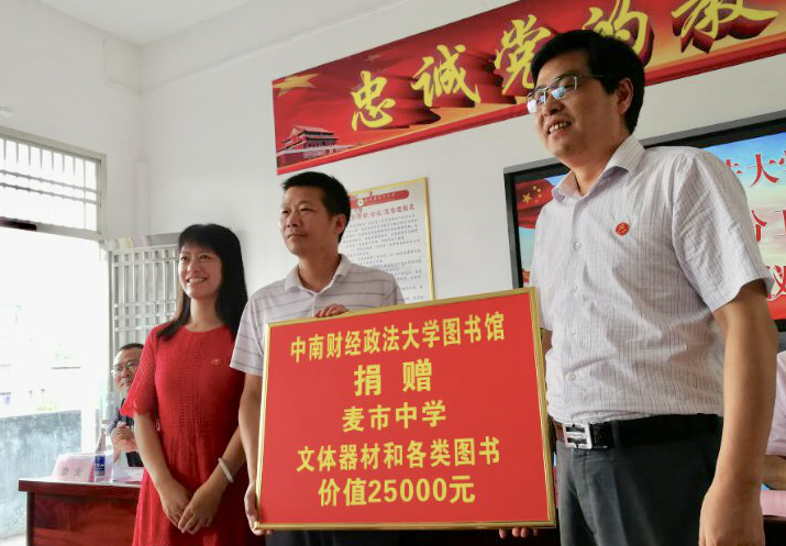 这次活动为麦市中学捐赠了价值2.5万元的文体器材与各类图书,并为一名贫困学生提供了1000元助学金。捐赠经费全部来自图书馆党总支与分工会、以及图书馆党员们的个人捐款。广大党员用习近平新时代中国特色社会主义思想武装头脑,用实际行动践行“两学一做”,“不忘初心、牢记使命”,发挥党员的先锋模范作用。
