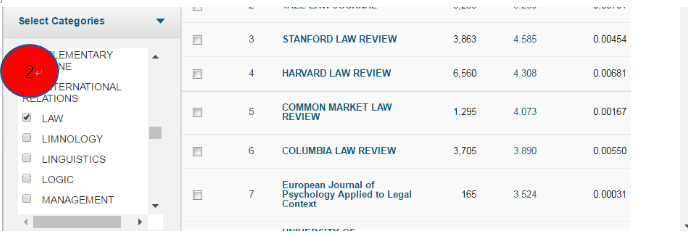 (2)在页面选择LAW,即法学学科,提交submit按钮,即可获得检索结果。
