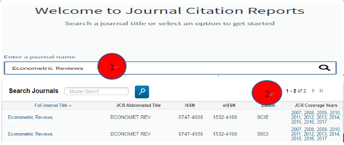 (2)得到检索结果。从下图可以看出,《Econometric Reviews》一刊为SCIE/SSCI双收录刊物,自2007年开始被SCIE/SSCI收录。