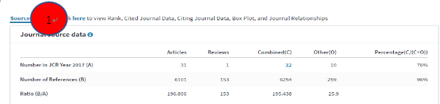 在期刊详细页面,电子Source data 后面的here(1)按钮,即可看到KeyIndicators指标,这里列举了该期刊的总被引频次、影响因子、排除子引影响因子、5年影响因子等多个指标,一般选择第二列影响因子即可。