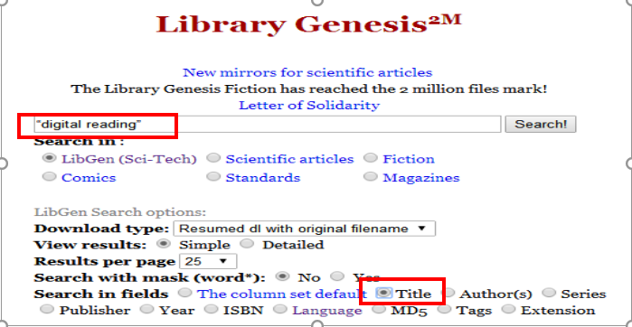 资源范围:libgen其是一个支持免费下载电子书籍的图书索引库,提供科技、科学文章、小说。漫画、杂志等书籍,可根据作者、期刊号、出版者、书号、语言等进行选项进行搜索并下载到本地。
