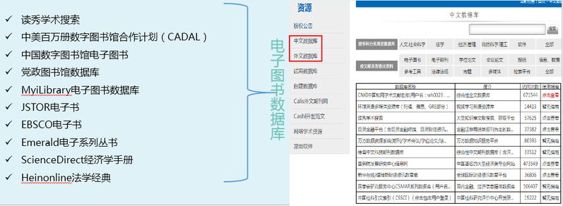 那么问题来了,天底下有没有掉馅饼的事情呢,有没有免费的电子图书数据库可以用呢?当然有,当然这是针对财大师生的福利,离开了校园网,啥也看不了(当然,你也可以用校外资源远程访问!详见图书馆主页校外访问栏目http://library.zuel.edu.cn/5191/list.htm)