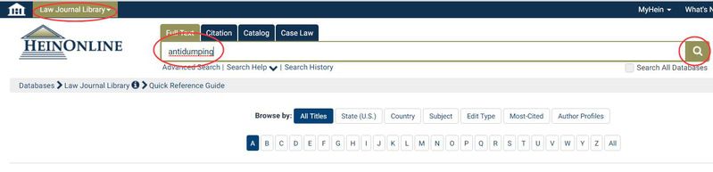 示例:查找关键词为“反倾销(Antidumping)” 的相关文章。