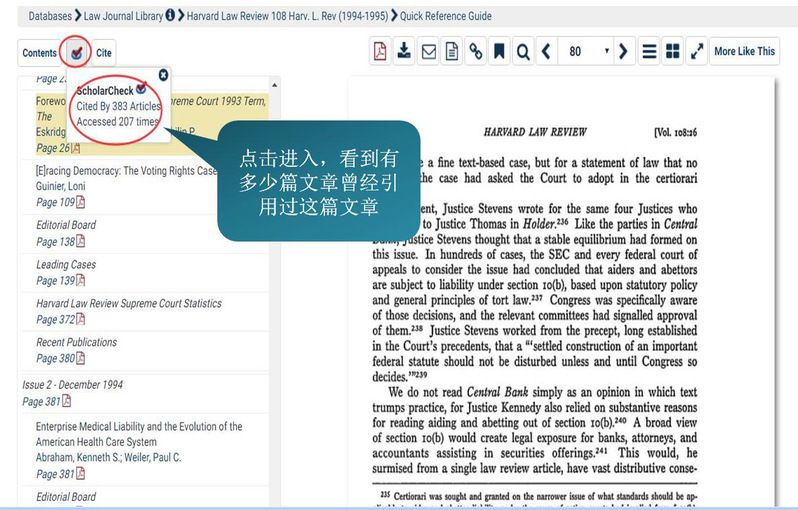 示例:查找引证号为108 Harv.L.Rev.80的文章。