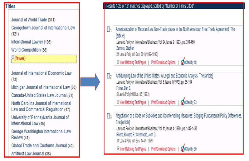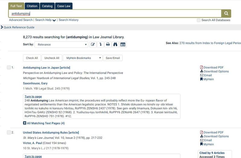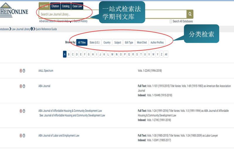 1. 与Lexis与Westlaw不同,Hein并没有为各普通法法域量身定做专属系统,因为Hein只有一个总系统,此系统汇集了公司购买的,来自各合作出版社的全部电子资源。