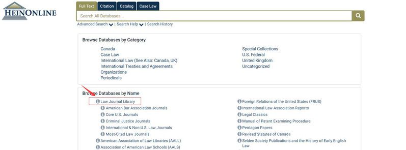 点击Law Journal Library(法学期刊文库),进入到Law Journal Library 检索界面。