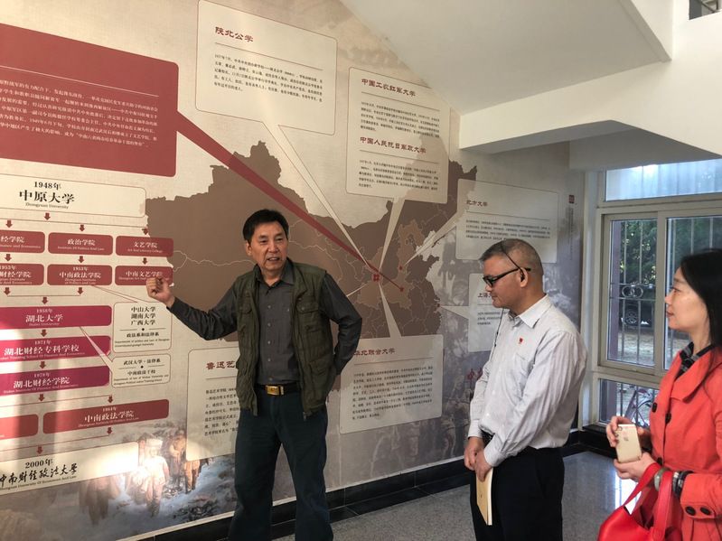 徐警武带领大家认真参观了校史馆各个展厅,一起重温了学校从1948年中原大学到如今中南大70年来不断发展壮大的风雨历程。展厅中展示的建校以来各个历史时期历史照片和实物影像,记载着我校建校初期的艰苦奋斗岁月,一代代学子的奋发努力成果,客观、真实、全方位地反映了学校近70年风雨弦歌的办学历史和几代人痴情追求理想的过程。