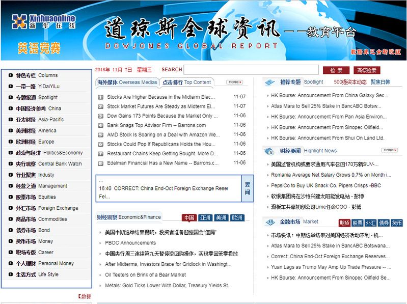 新华在线和道琼斯通讯社联合推出的专门为国内高等院校及社科研究机构的教学研究制作的国际财经资讯教育平台,提供权威国际资讯,培养国际视野。该数据库汇集了《华尔街日报》、《亚洲华尔街日报》、《远东经济评论》、《巴伦周刊》、《财志》等9大媒体深入、大量的国际财经资讯以及分析评论。