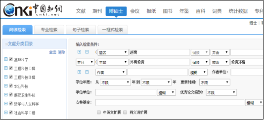 检索方法:高级检索:标题=越南 并且 (主题=外商投资 或者 投资环境)
