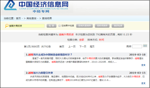 以越南外商投资为检索词,检索到792篇报刊文献。
