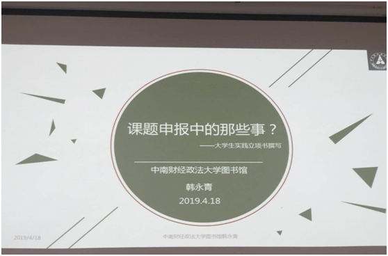 (通讯员 牟彪 谭小霞 冉荣)4月18日下午2点半,应经济学院新小康协会邀请,图书馆信息咨询部韩永青老师在文澜206开展了主题为“课题申报中的那些事”的讲座。此次讲座面向新小康协会全体同学,以提高学生信息素养,推动协会实践调研立项书撰写为目的,真诚邀请图书馆从事多年信息素养教育的韩永青老师为同学们开展讲座。