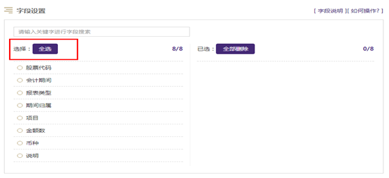 接下来是字段设置,由于这个库字段较少,因此我们都选中,字段就是最后excel的列,而代码就是excel的行。