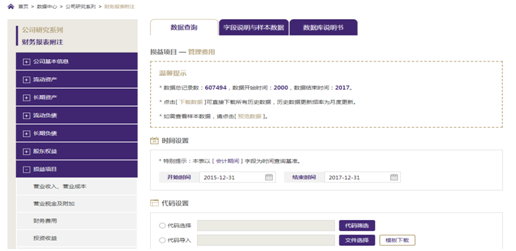 “字段说明”与“数据库说明书”可以带来一些数据库数据的介绍说明,包括数据区间以及来源还有数据单位,这里就不详细介绍了。