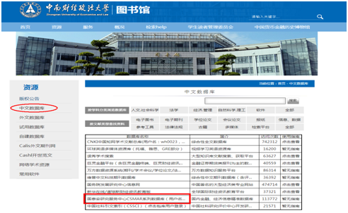 首先,在图书馆主页中文数据库列表中找到国泰安数据库。